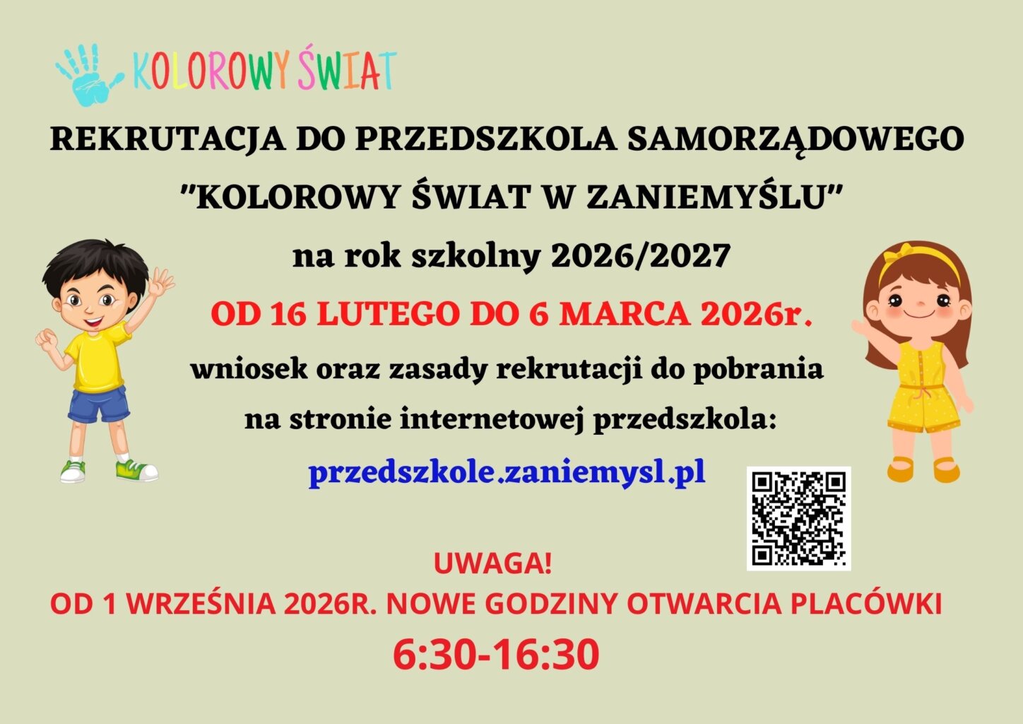 Od 16 lutego do 6 marca 2026 roku trwa rekrutacja do przedszkola na rok szkolny 2026/2027